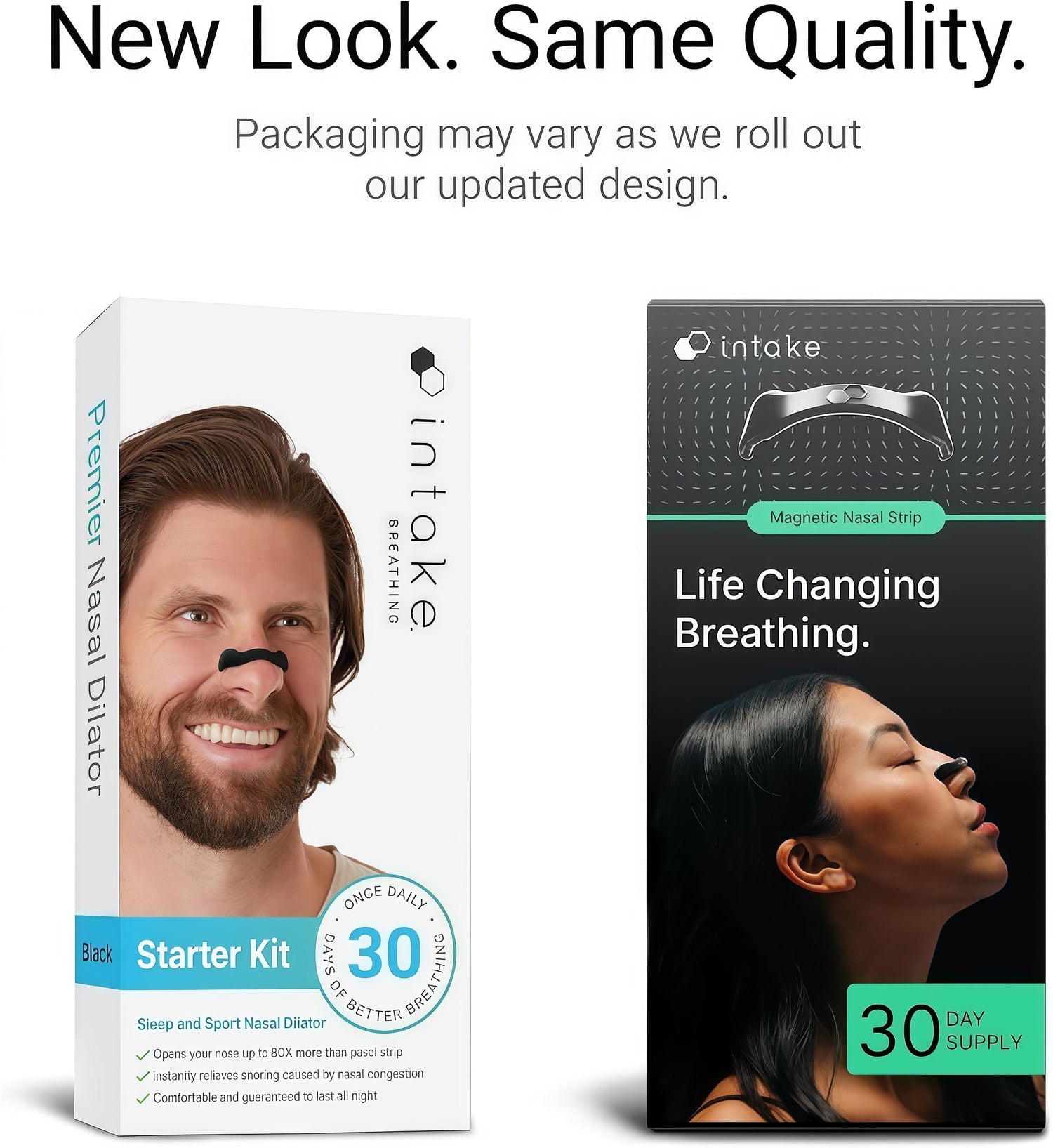 We’re updating our look, so your order may arrive in either package. Rest assured—it’s the same Intake quality inside.